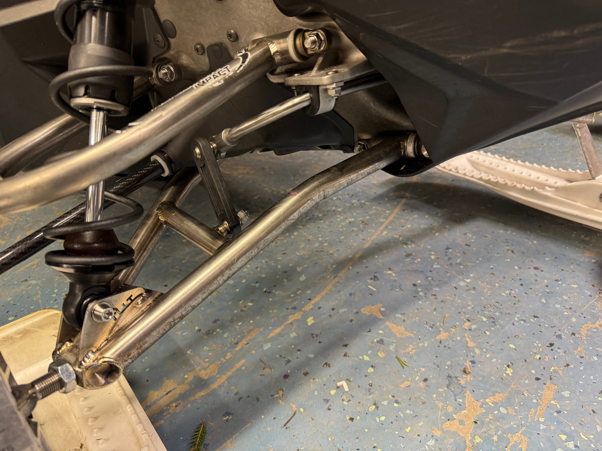 Vi föredrar att köra med krängningshämmaren kvar, men av vikt besparings skäl byter vi ut den mot titan liksom tillhörande skruvar och pinnbultar. Viktminskning 0,2 kg!